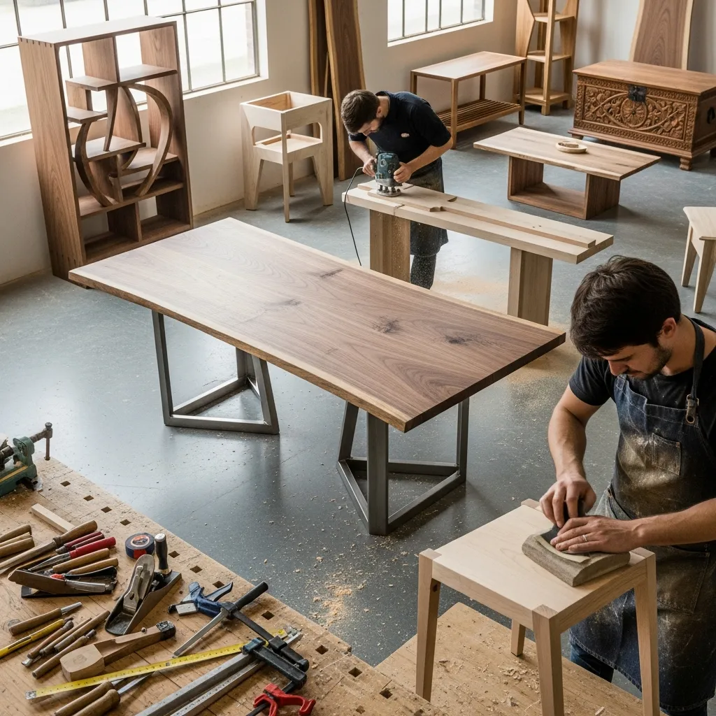 With decades of combined experience in fine woodworking and metalworking, our craftspeople transform digital designs into physical reality. Their expertise in traditional joinery techniques and material behavior guarantees each piece meets the highest standards of durability and finish quality.